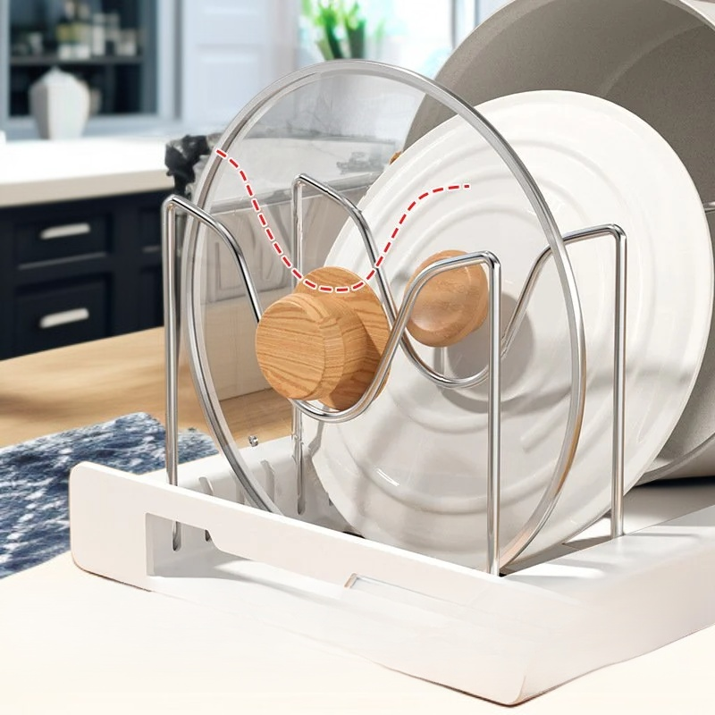 ● 調整可能な仕切り付きで、鍋やフライパンのサイズに合わせて自在に収納でき、整理整頓が簡単です。